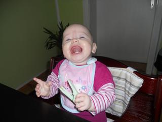 tak vcera mi sousedi malou kolem 10 vecer vzbudili a asi ji pretrhli spanek, protoze se mi pak asi jeste 3x vzbudila a pokazde jsem ji musela uchlacholit ke spanku, ale vzbudila se poradne az kolem 7 rano, ted si dava slofika 😀