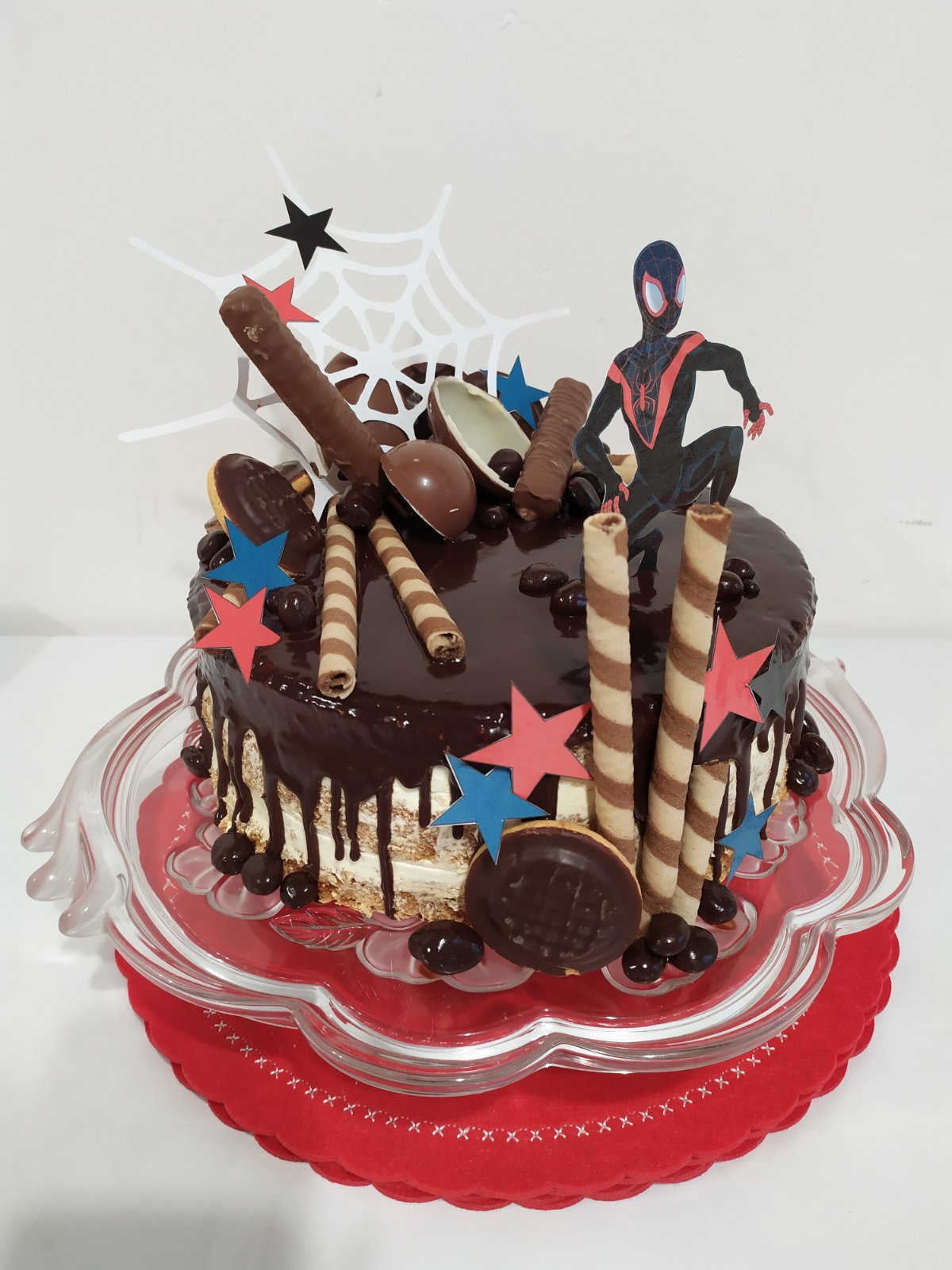 Teraz k záchrane - ak nemáš šancu zohnať postavičku, daj túto potvoru dole a poukladaj na tortu ovocie - Jahody, maliny, ríbezle, čučoriedky, hrozno - čokoľvek čo kúpišv Kauflande, či v Lidli. Môj drobec fičal na Labkách a pár dní pred narodeninami vyhlásil, že chce na tortu Spidermana. Toho by som nedokázala verne namodelovať, tak som vytlačila obrázok a zalaminovala ho aj s pavučinou. Nemáš možnosť niekde kúpiť jedlú oblátku? mohla by si jednorožca vystrihnúť a zapichnúť pomedzi ovocie. Alebo použi čokoládky, keksíky.