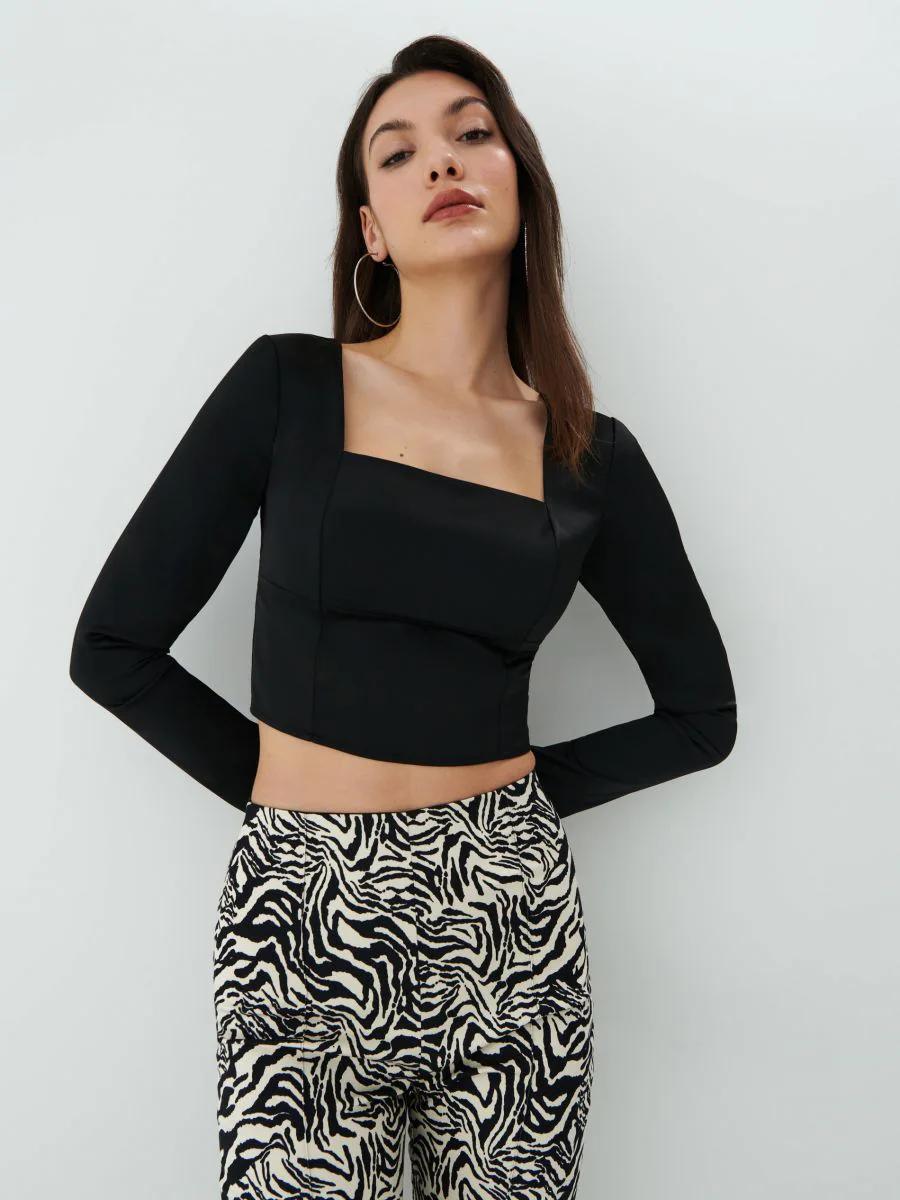 A k tomu sa snazila dodrzat pravidlo, ze obtiahnuty crop + sirsi spodok, alebo naopak volny crop + obtiahnutejsi spodok (nemusi byt skinny. alebo aspon minimalne okolo stehien mierne vypasovany, kopirujuci postavu, potom uz nadol kludne volny).