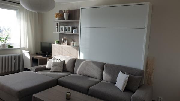 @baculka77 švagriná býva v dvojizbáku, jedna izba je detská, obývačka slúži aj ako spálňa. Nie je nadštandardne veľká, ale gauč je samostatný a posteľ majú vyklápaciu s normálnym kvalitným matracom, žiadne spanie na sedačke a boľavý chrbát. Ráno sklopí, vyzerá to ako zatvorená skriňa, večer vyklopí, robota na 15sekúnd. Za mňa ideálne riešenie v malom byte.