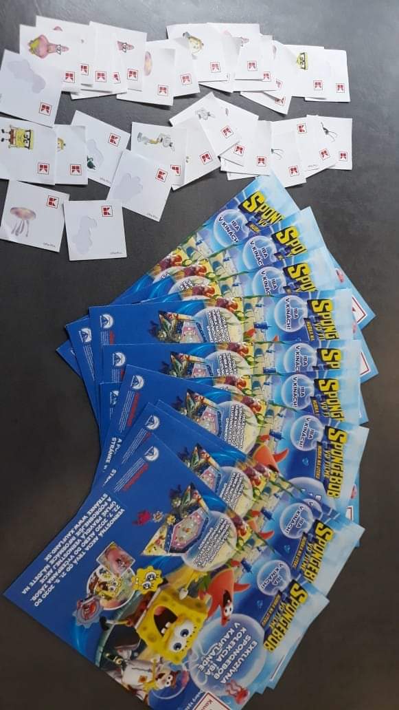 Mám aj vyplnené kartičky a nálepky na riad spongebob