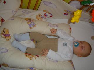 dala som Vam tam aj jednu fotku ako ja davam kojenecky vankus v postielke okolo maleho aby sa mi maly neotacal v postielke a velmi to pomaha len niekedy vylezie nozickami nan ale to neva.