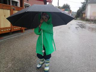 baby, tak my posledne dni chodime takto von 🙂 tu sme sli z obchodu a Dodko zobral dazdnik tete Ivke /moja segra/ 😀 😀 😀