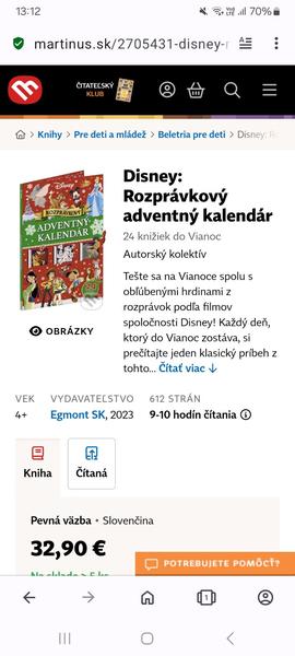 @katka164 Pozerám ten knižný adventný kalendár, v popise píšu, že v každej knižke sa nachádza jeden klasický príbeh. Sú to teda originál príbehy? Mám na mysli, že napr. v knižke Na vlásku je taký istý príbeh, ako bol sfilmovaný? Lebo v tej verzii z roku 2022 to nie sú originál príbehy, ale napr. Vianoce pod vodou u Ariel, nie originál príbeh Ariel, ako sa zmenila na človeka. Dúfam že som sa dobre vyjadrila 🙂 Jedná sa mi o to, že ak sú to originál príbehy, tak to je pre nás bezpredmetné, lebo už sme všetky buď videli alebo čítali v samostatných knižkách. A už mám ten kalendár v košíku tak teraz neviem či kupovať či nie.