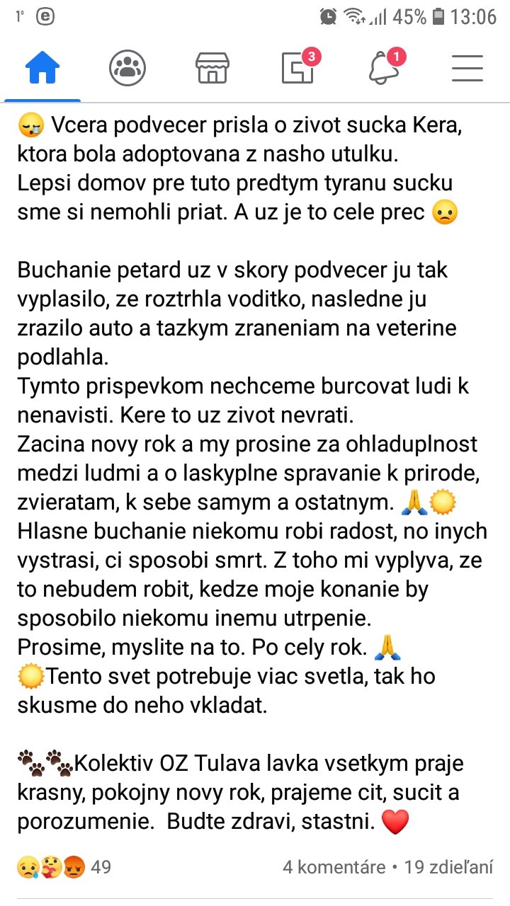 @elizabet173 no to práve nemôžem vedieť , tak isto ako to či nerobíte bordel v lesoch 😃mne je to v podstate šumafuk. Len mi príde smiesne to rozhorčenie na sociálnych sieťach keď si ajtak nič nepomôžete iba tlak si dvíhate. Môjho otca teta pred 3 dňami zomrela kvôli petardam ktorý púšťal niekto iný , TOTO je vážne
