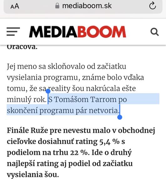 Dnes som čítala ze niesu spolu. https://mediaboom.sk/ruza-pre-nevestu-po-finale...