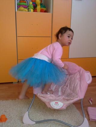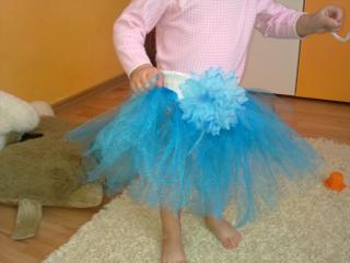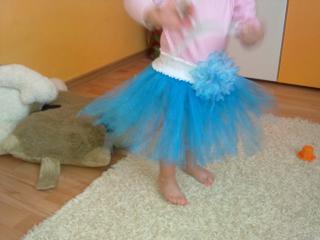 Tak, ďalšia suknička je hotová. A Sára ma milo prekvapila, lebo si ich stále pýta obliekať a potom v nich krúti riťkou, no zlatá je. Mišku ešte musím trošku presvedčiť 🙂 Inak, po dlhšom čase som vytiahla prvé dve tutu z tvrdého tylu a tento mäkkší je veru oveľa príjemnejší, ak ešte nejaké budem robiť, tak len z takého. A vôbec nevadí, že sa krčí, sama neviem, či sa mi taký miš-maš nepáči viac, než uhladené pásy tylu.