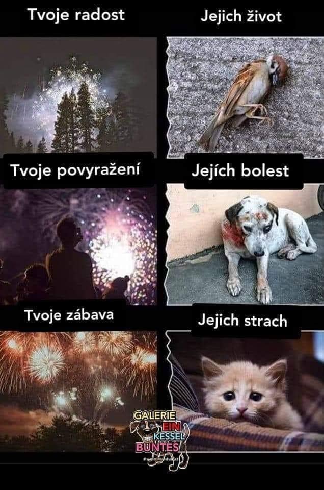 Nas pes a macky su pocas ohnostrojov v pohode, pes chce dokonca ten ohnostroj nahanat, ale tych volne zijucich zvierat je mi ozaj luto. Aj tych vystrasenych domacich zvierat samozrejme.
