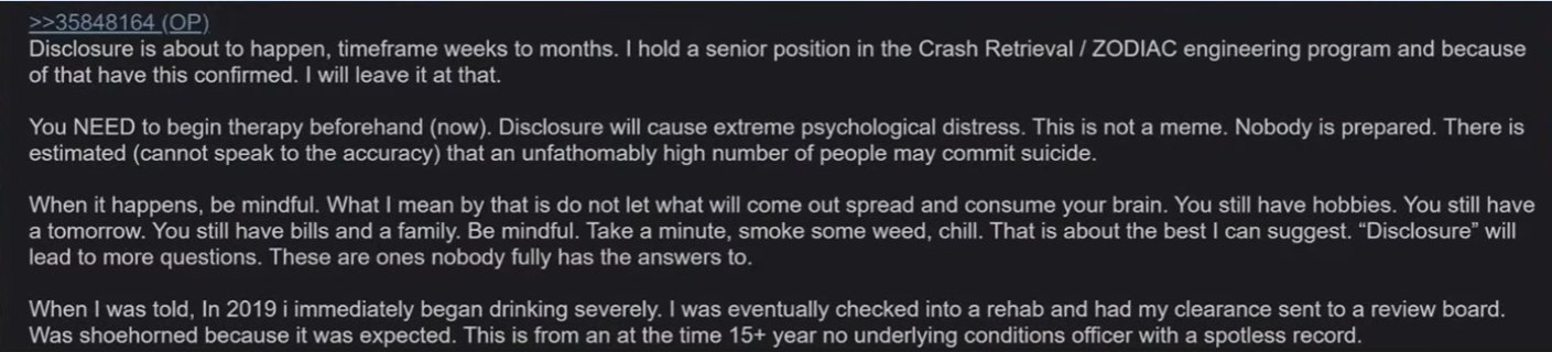 My tzv. whistlebloweri postupne odkryvame a larpujeme utajovane informacie o UAP vsade kde je to mozne, ako Reddit, 4chan atd.