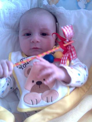 hracky ho este nezaujimaju, ani hracia deka, nedokaze iba tak lezat, musim sa mu stale venovat, inak place. buduci tyzden mame poradnu a ockovanie, tak som zvedava ako to zvladne 🙂