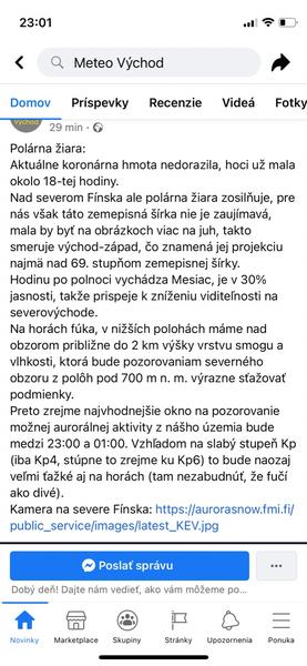 @66bublinka66 Parada!!!... No konecne si sa dockala. A ako dlho ste cakali? A ako dlho to ziarilo a ake to bolo jasne? Ak si napriklad vonku na prechadzke a nepozeras prave v tom momente na oblohu, zaujalo by ta to a mala by si dost casu sa ist pozriet ak by ti napriklad niekto poslal spravu ze "chod sa pozriet von, lebo je polarna ziara."