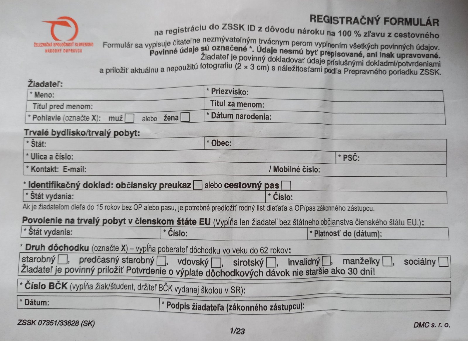 Pokiaľ nie je zťp nárok na vlak zadarmo nemá. Toto je tlačivo všeobecná pre všetkých ľudí čo sú starobný dôchodcovia, ID.