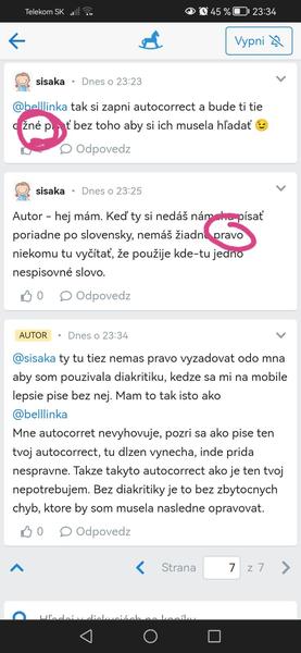Autor - ja si nemusím nič opravovať, ja sa tu neprezentujem ako 100% ovládajúca slovenčinu, ani nejdem do vývrtky, keď niekto napíše vonku miesto von a dokonca viem rozlíšiť, keď im autocorrect zmení slovo, či nedá niekde dĺžeň.