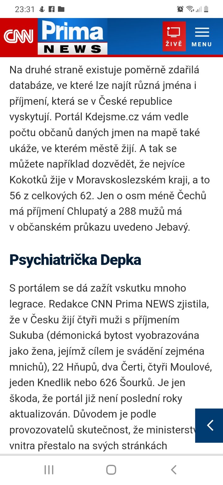 Damy,sobota vecer,muz mi spi,dieta spi a ja som citala topkomenty s priezviskami. Dajme si aj my odlahcenu temu,ake najdivnejsie priezvisko ste “poculi”,zazili…nejake prihody? Ja napr pracujem s ludmi a mam ich kopeeeeec,tzv “zvieracie”-Baran,Byk,Zajac,Kralik,Holub,atd,dalej Kapusta,Vidlicka,Princ,Hlavaty,Hola,Pagačova,Mydlo,Mašľa,Fanfara,Slivka,Hruska,Hrib,Stromcek,Krivy…inak,tymto sa nevysmievam ani nic,mne tie prihody pridu mile a usmevne a mnohych som si aj oblubila🙂 ta tema nema byt poburujuca,je to iba o tom,ze si vieme pozartovat aj na vlastny ucet mozno…vsetkych si vazim rovnako,takze prosim neutocte,len si sprijemnime chvile. Inak,ten pan Princ sa mi stazoval,ze sa ide rozvadzat a ze nevie,akeho princa este jeho zena ocakava😁 alebo Hruska volal Slivkovi a trosku trvalo,kym sa dostali zo smiechu,ze ci nieco spolu “vypalia”…🙃 mozno si este na nieco spomeniem…