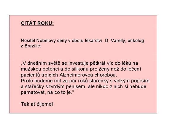 Doktor :"Fajn, předepíšu Vám heřmánkový čaj a jakmile vezme manžel za