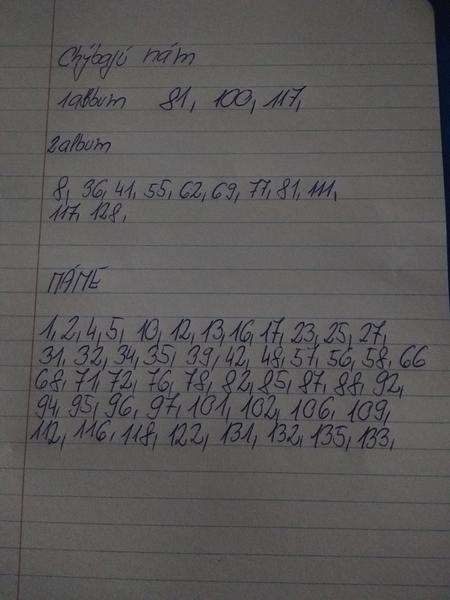 Ahojte zhaname tieto čísla 2,7,8,27,33,48,57,59,60,70,72,80,84,86,98,103,108,113,115,116,121,124,125,126,132 a na vymenu máme