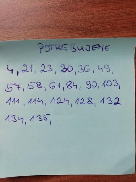 Zdravim😉 my potrebujeme cisla 33,34,40,41,42,69,75,83,85,86,105,120,124,127,132 a menovky 1,5 na vymenu mame cisla 5,6,7,8,10,10,12,14,18,22,23,27,28,28,31,32,36,38,45,45,46,48,49,51,53,64,67,71,87,89,96,98,98,98,100,101,103,103,103,111,115,115,116,117,129,131,133 menovky 2,3