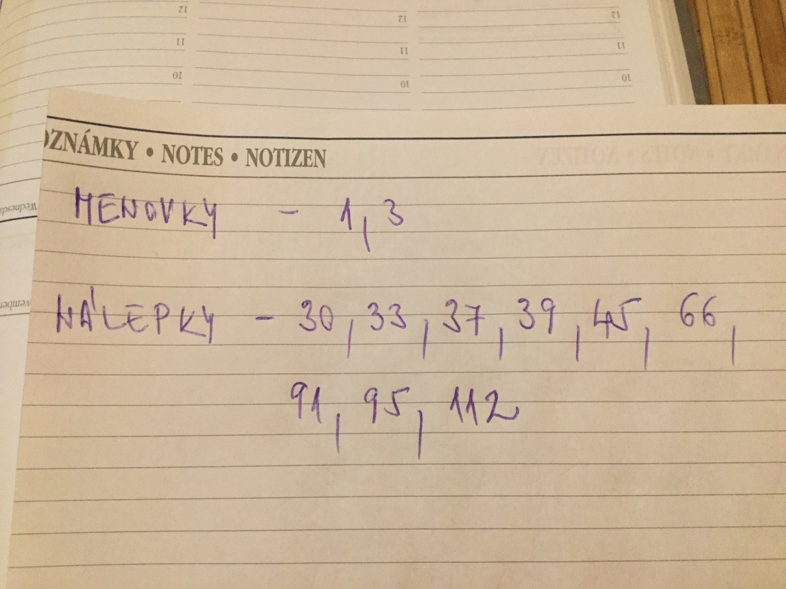 na výmenu máme č. 9, 12, 13, 17, 21,32,42,50,62,65,67,68,74,83,90,93,95x5,97,106,109x2,114,129