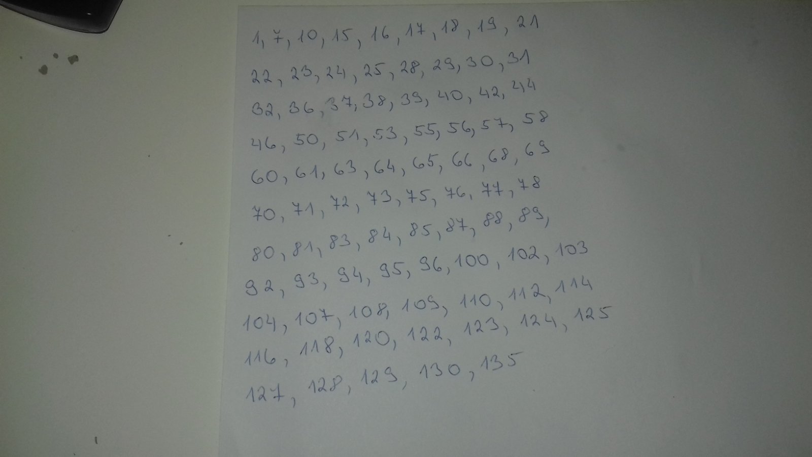 A navyše máme:11,15,25,26,28,31,32,39,40,41,47,49,55,57,61,63,78,80,81,84,86,91,92,94,96,97,99,100,102,104,106,108,117,118,119,123,125,131,132,133,134.