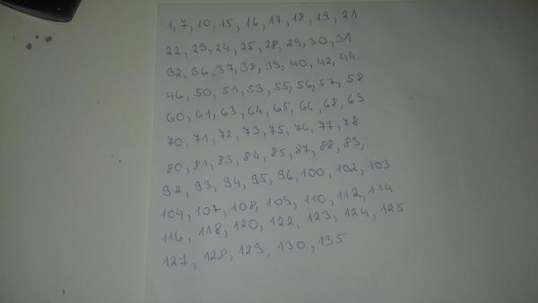 31,35,36,37,38,41,42,45,48,53,57,63,70,71,73,74,75,79,80,85,91,94,96,101,102,104,106,108,112,118,124,128,130,133,