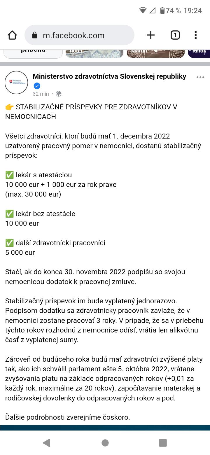 @dadulkaf aj Smatana (ktorý nemusi Igora M.) v Na telo plus priznal ze ponuka co sa tyka terajsej ponuky platov je vysoko vysoko konkurenčná oproti CR, kde ide najviac našich lekárov. Co sa tyka mladých lekárov, ktorí vykrikuju ze nemajú finacnu motiváciu tu ostat, tak ti maju viac ako v CR. Cize asi tak...