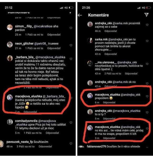 @zuzi0911 chvíľu nad tebou som zdieľala tieto screeny, to nepíše tá mladá, ale nejaké sprosté decko čo sa na tej kauze chcelo asi pobaviť.. tento profil z ktorého bol písaný komentár sa dnes už hrá na podporu pre obeť a odsudzuje Elu, hlavnú aktérku, zaujímavá taktika ako "pomôcť " obeti, vypisovať provokačné komentáre v mene hlavnej aktérky..