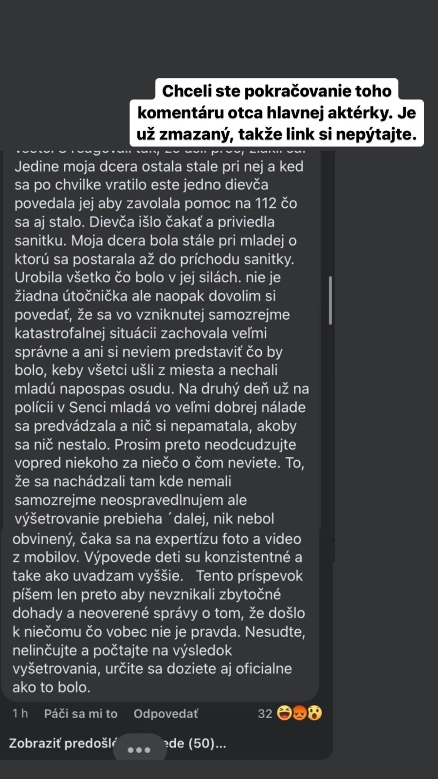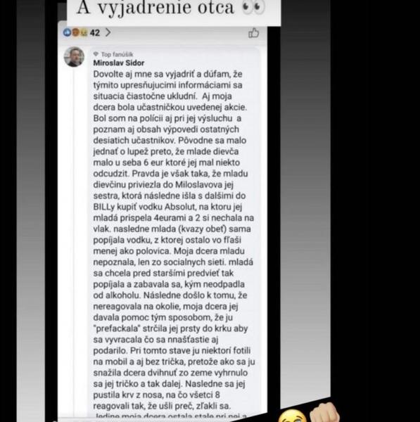 tak tu mate vyjadrenie otca jednej z utocnicok a spravte si obraz same. Spytajte sa samej seba, ci keby ste reagovali rovnako 🙄🙄 A potom sa mozeme bavit, preco utocnicka je taka, aka je ... pretoze mozno doma vidi model, ze vsetko prejde - staci nieco tvrdit a ostatni na to skocia.