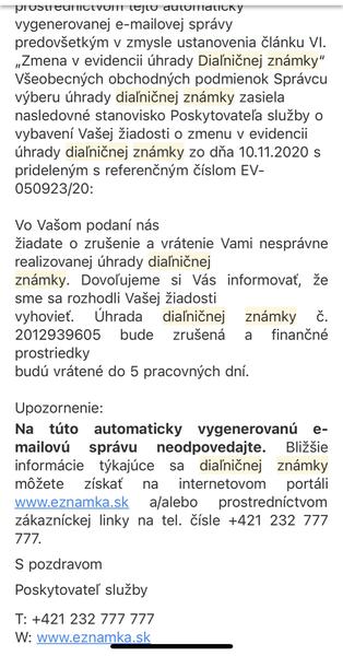 Zmena v už zaplatenej diaľničnej známke
