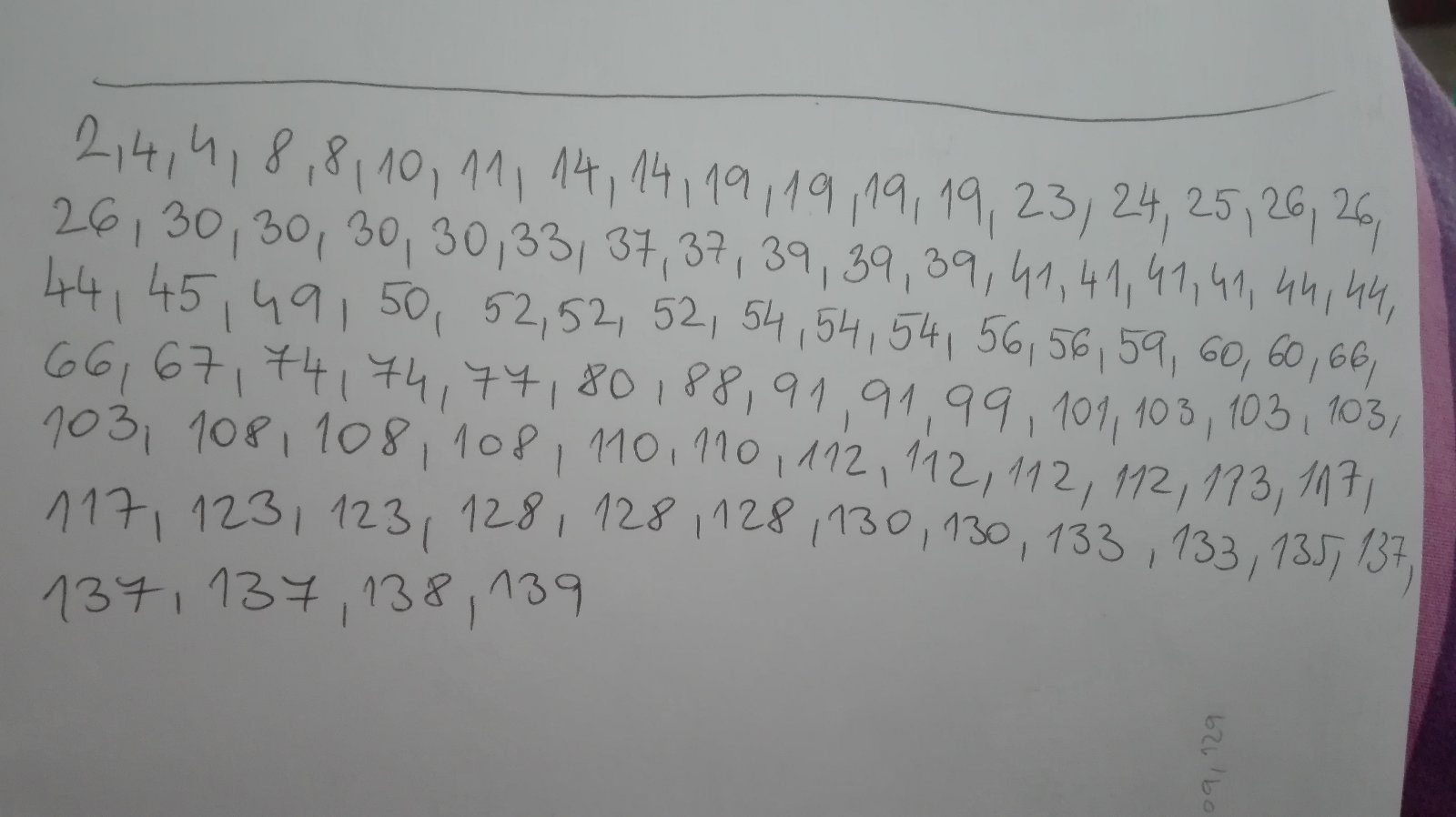 1,7,10,15,18,19,20,22,23,24,26,30,30,33,34,37,43,44,44,53,54,55,67,68,69,77,82,83,84,87,98,100,103,107,109,114,120,125,127,137,