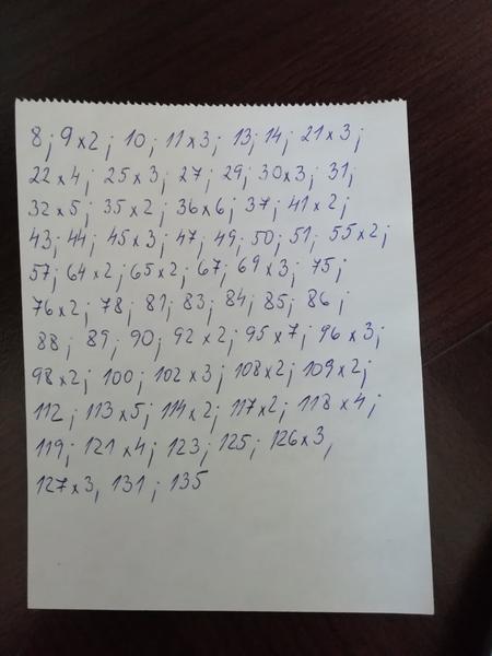 čISLA-1,1M,2M,3M,3,5M,7,20,21,23,25,27,32,4041,44,47,49,53,55,57,59,63,67,70,72.78,81,82.84,87,96,101.103,117,120127,134