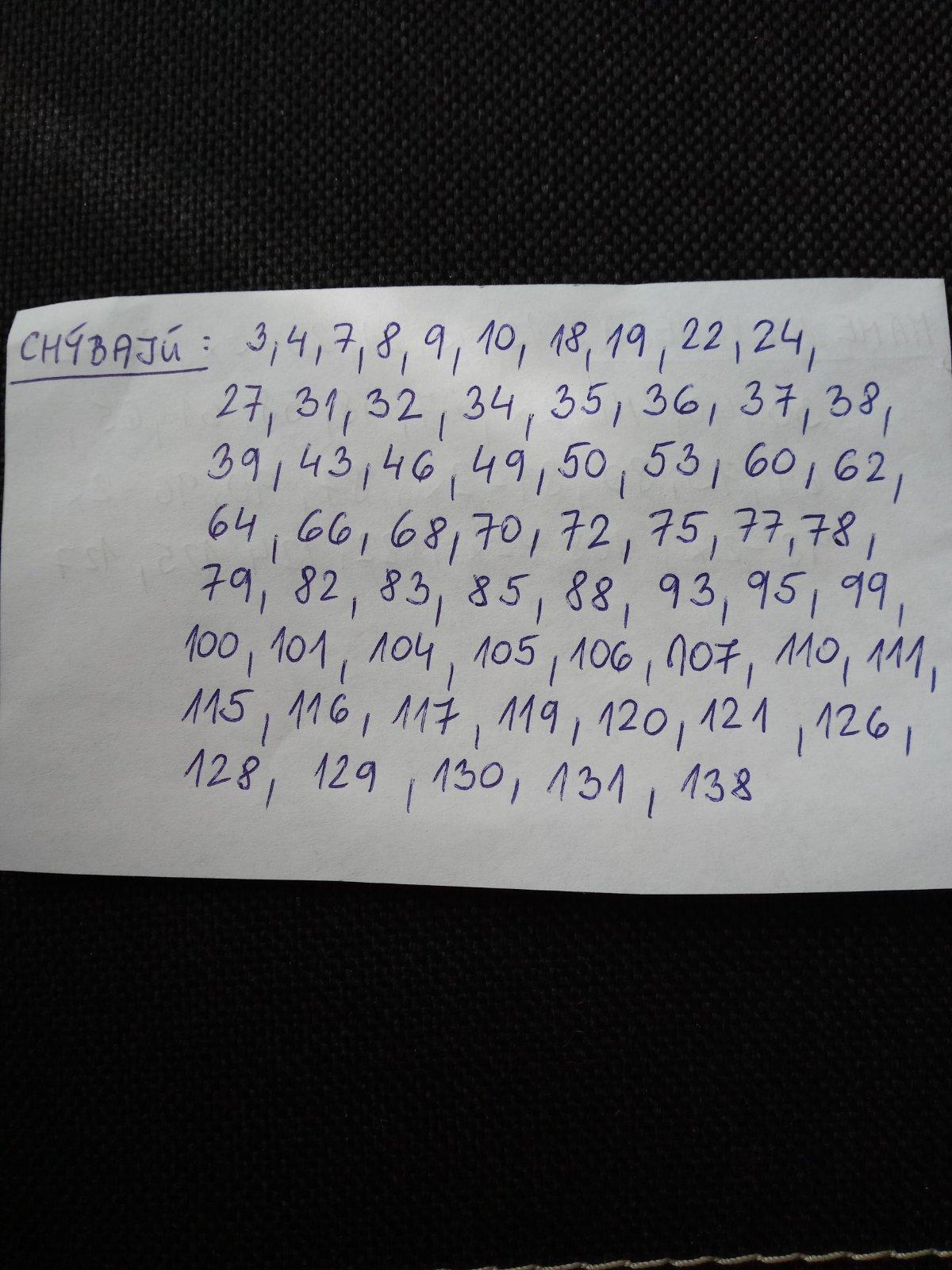 POTREBUJEME: 5, 21, 45, 47, 54, 57, 62, 63, 65, 70, 71, 76, 82, 89, 94, 119-122, 124, 127-129, 131, 135, 140. Aj odkupim, za rozumnu cenu 😉