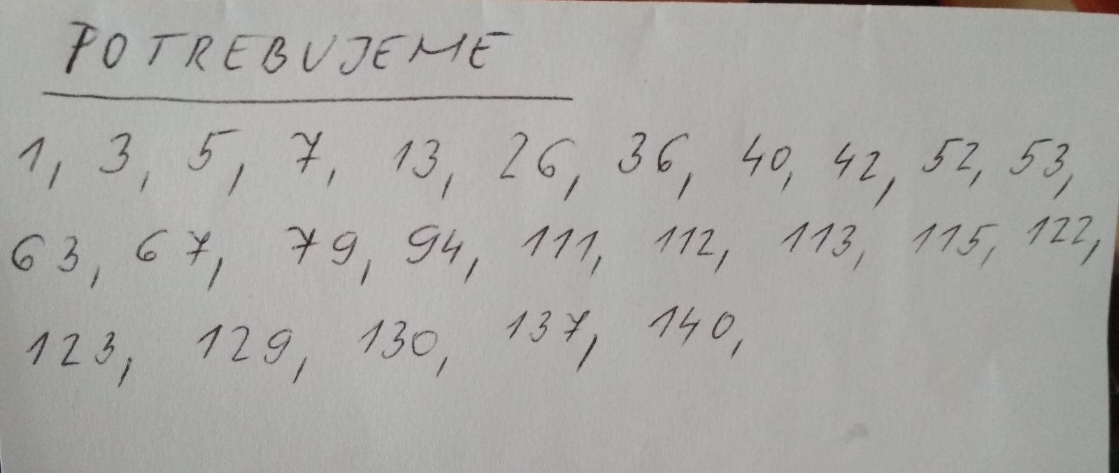 za postovne: 37, 44, 47, 56, 72, 73, 77, 88, 89, 89, 91, 92, 95, 100, 102, 102, 102, 103, 106, 114, 119, 125, 131, 132