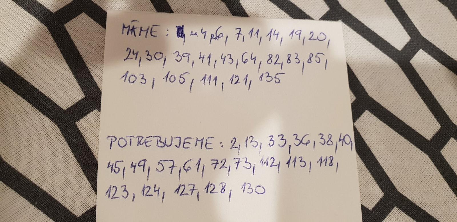 My by sme potrebovali este 21, 36, 63, 75, 77, 83, 99, 130. Mame vela na vymenu, tak sa nejak dohodneme