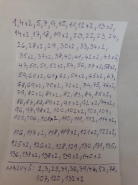Nam este chybaju 14,15,28,42,43,60,63,68,72,84,88,91,93,115 dvakrat, 128
