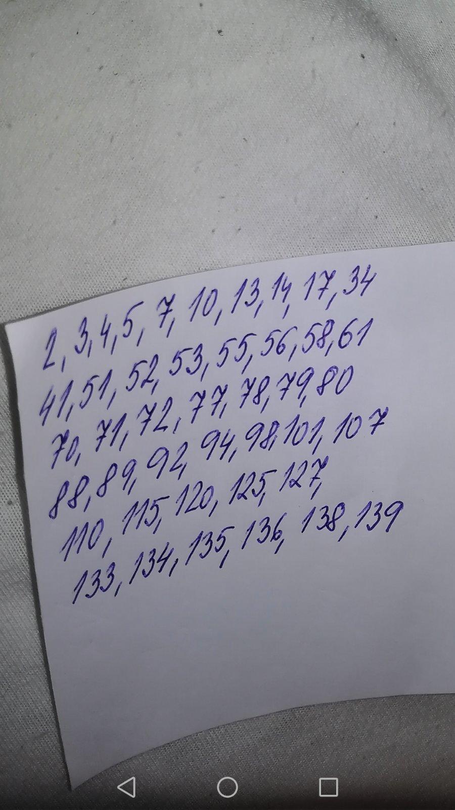 Chybaju nam: 1,2,3, 4, 5, 6, 7, 10, 11, 12, 13, 14, 15, 16, 19, 20, 21, 22, 24, 25, 27, 29, 30, 32, 33, 35, 36, 37, 40, 41, 42, 43, 44, 46, 47, 49, 50, 51, 54, 58, 59, 60, 61, 63, 64, 65, 66, 68, 69, 70, 71, 73, 74, 75, 77, 78, 79, 80, 81, 83, 84, 85, 88, 89, 91, 93, 94, 96, 99, 100, 101, 105, 107, 108, 110, 111, 112, 113, 114, 116, 117, 119, 120, 123, 124, 125, 130, 131, 135, 136, 137, 138, 139.