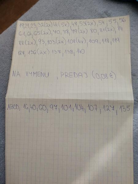 Mám k výmene 46, 47, 53 (2x), 55, 82 (2x), 102 (2x), 103, 114 (2x)