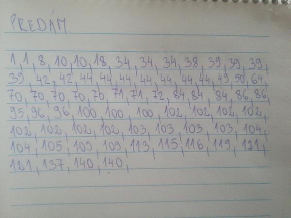 na výmenu mám 1,3,8,10,17,18,21,25,29,30,32,34,38,39,40,42,43,44,53,55,57,59,61,62,64,67,73,74,80,81,83,86,90,93,96,97,102,103,106,109,110,115,117,121,122,123,131,133,134,136,139