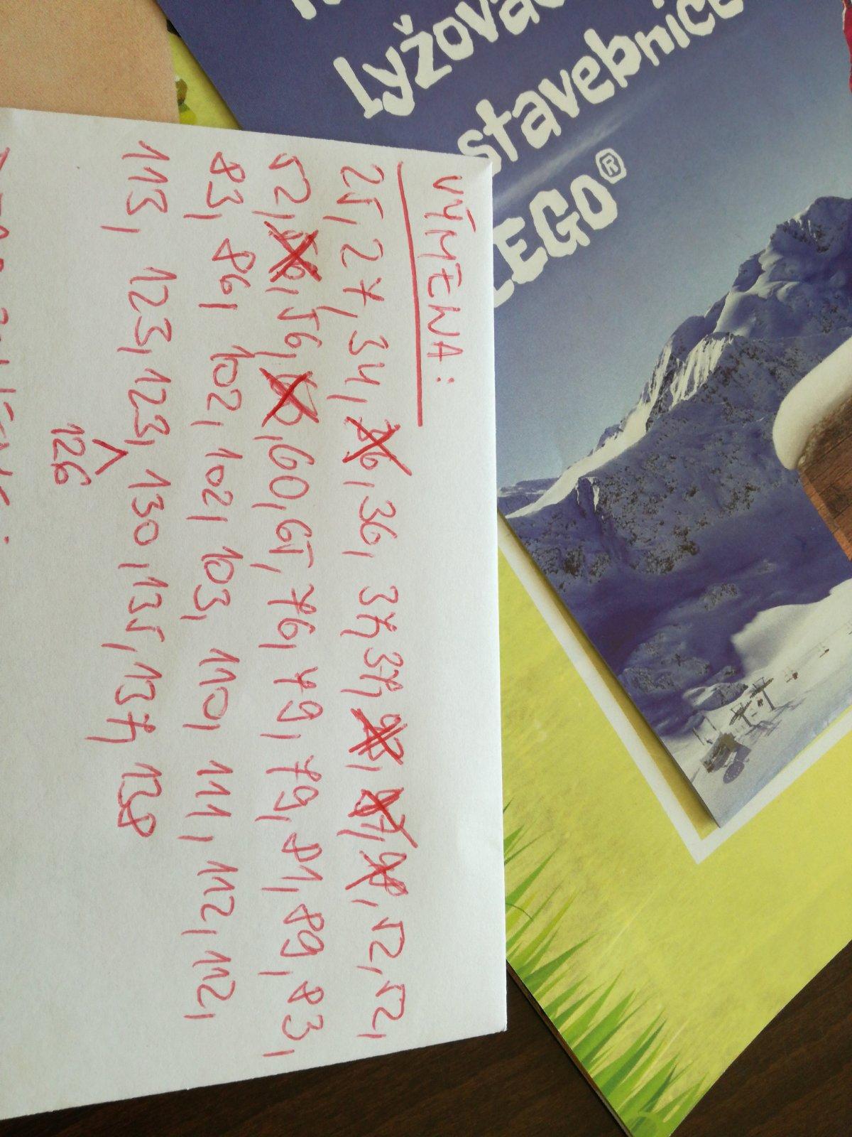 A na vymenu mame: 3,6,9,15,16,20,22(3),26(2),30,31,33,34,36,37,39(2),41,42,44,57,61,62,63,65,66,68(2),69,70(2),71,74,76,77,78,81(2),83(2),85,88,89,90(2),91,92(2),93(2),95,96,98,100(2),101(2),102(3),103,105(2),106,107,109,122,123,128,130,131,133,134(2),135(2),139(3),140