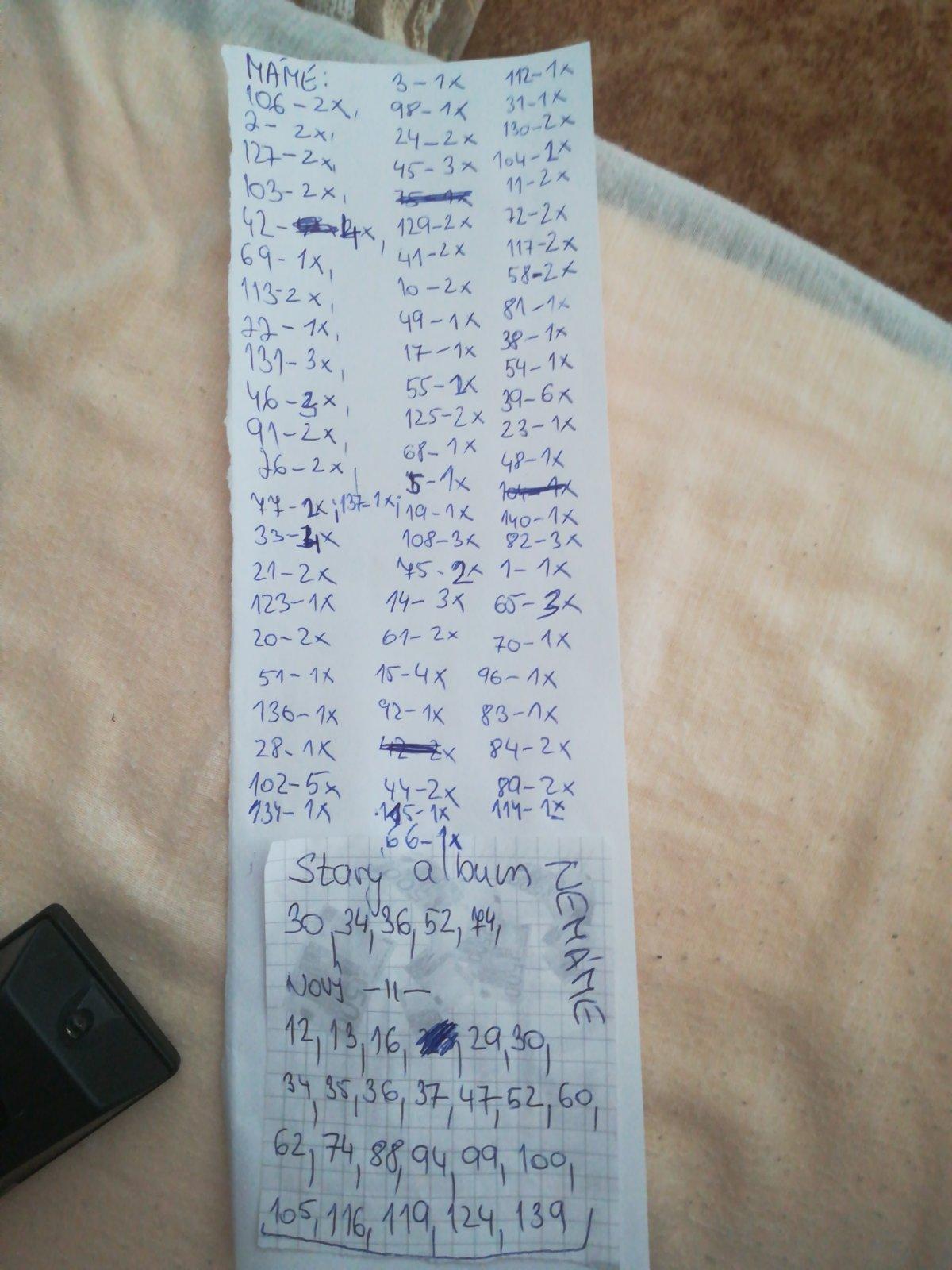 Ahojte, potrebovali by sme posledne nalepky 26,37,52,78,85. Na vymenu mame veľmi vela staci poslat cisla 😊 👍