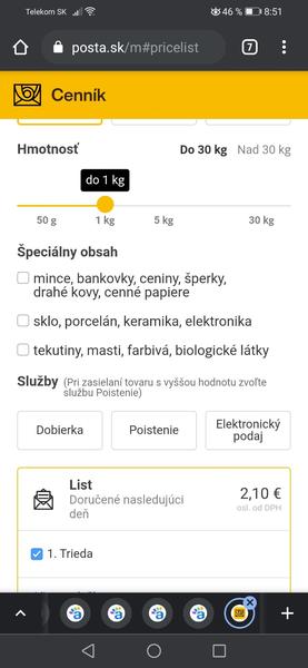 Ak si posielala obyčajne, je tu ešte možnosť že to bolo 501 a viac g a tým pádom drahšie to by vyšlo podľa cenníka presne 2,10