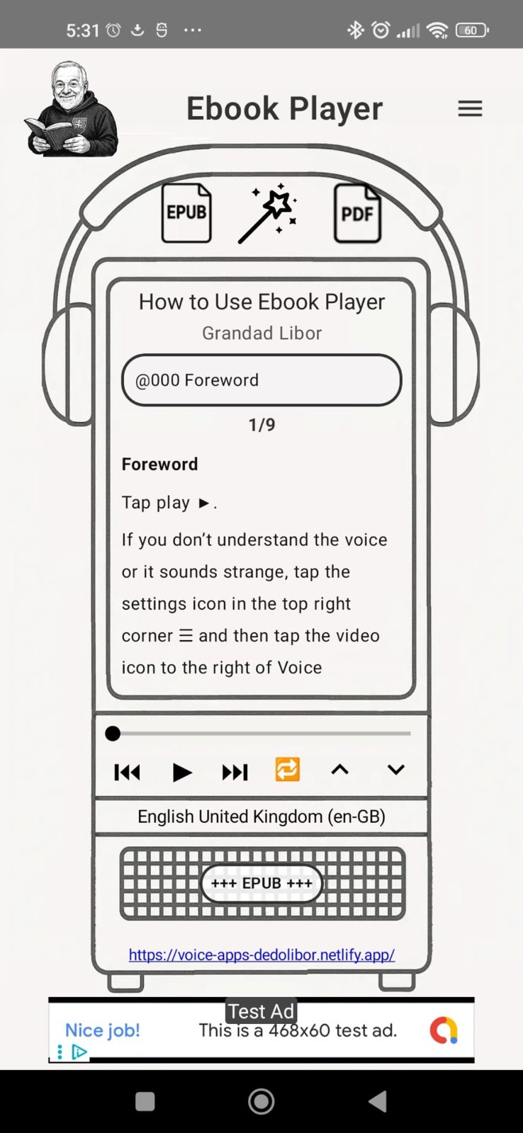 Ahojte. Vytvoril som prehrávač e-kníh zadarmo. Číta hlasom jazyka knihy. Má niekto záujem si to vyskúšať? Ozvite sa na voice.apps.dedolibor@gmail.com