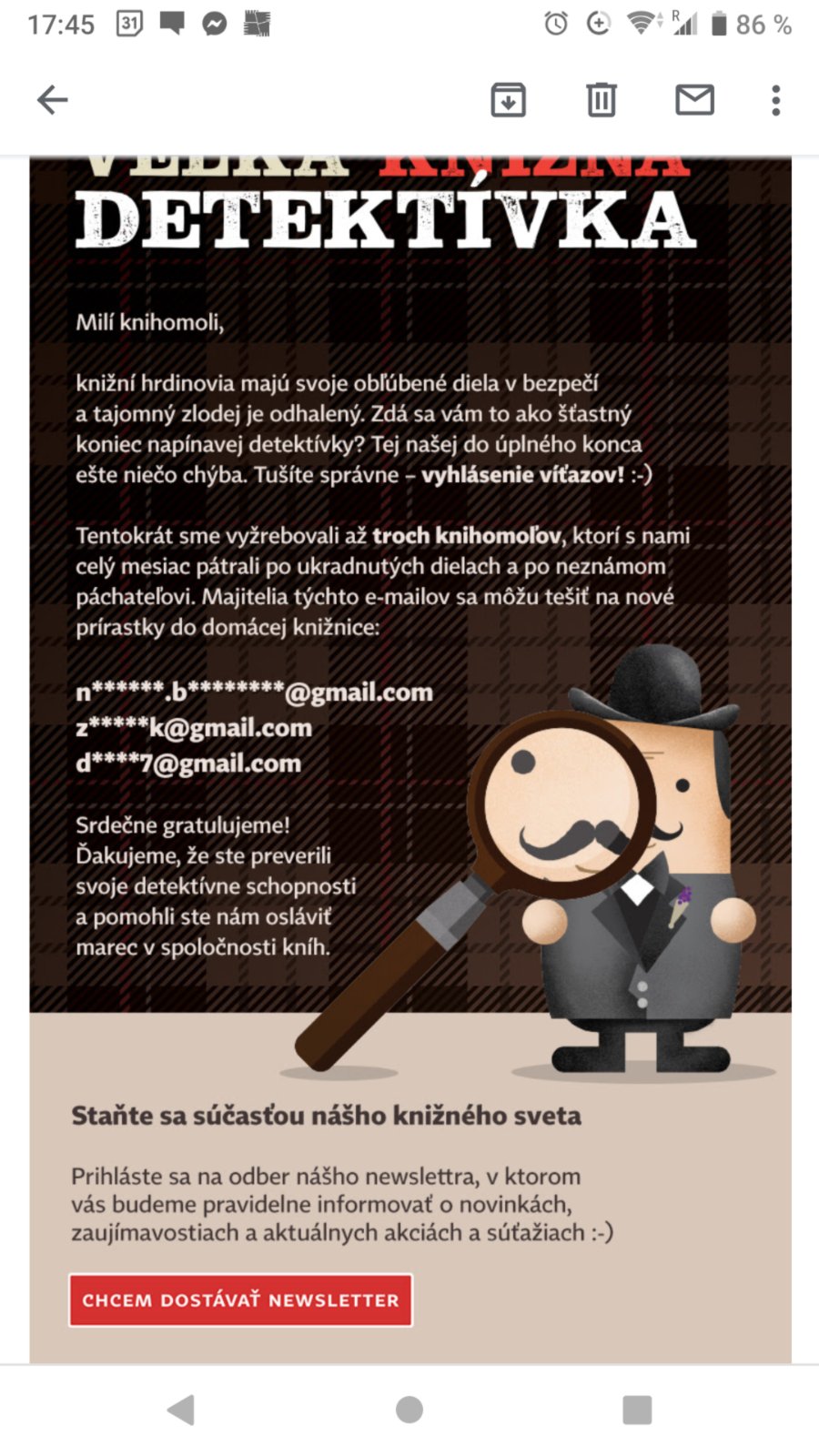 @0918300915 dnes prisiel email s vyhercami