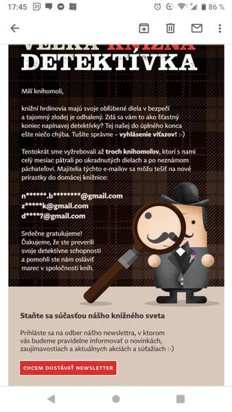 dali tam len zaciatocne pismeno a konecne pismeno email adresy - je to tam v tom emaily