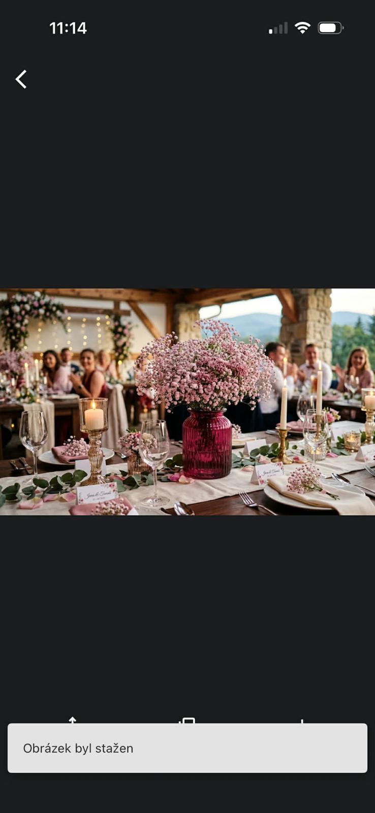 Dobrý deň, potrebujem poradiť. Zháňam veci na výzdobu na svadbu. Chceli by sme niečo, ako na fotke, ktorú sem priložím. Neviete mi poradiť, odkiaľ zohnať take vázy? Ako ste riešili kvetinovú výzdobu? Rozmýšľala som že spravím aspoň pár živých kytíc z gypsomilky, ale neviem, odkiaľ by sa dali také kytice zohnať.