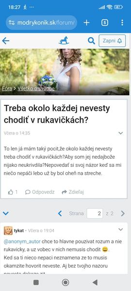 A záleží aj na tom čo je myslené pod tými rukavičkami. Lebo niektorí berú zle už len to, že nevesta nepritakáva, ale povie na to asertívne svoj názor.