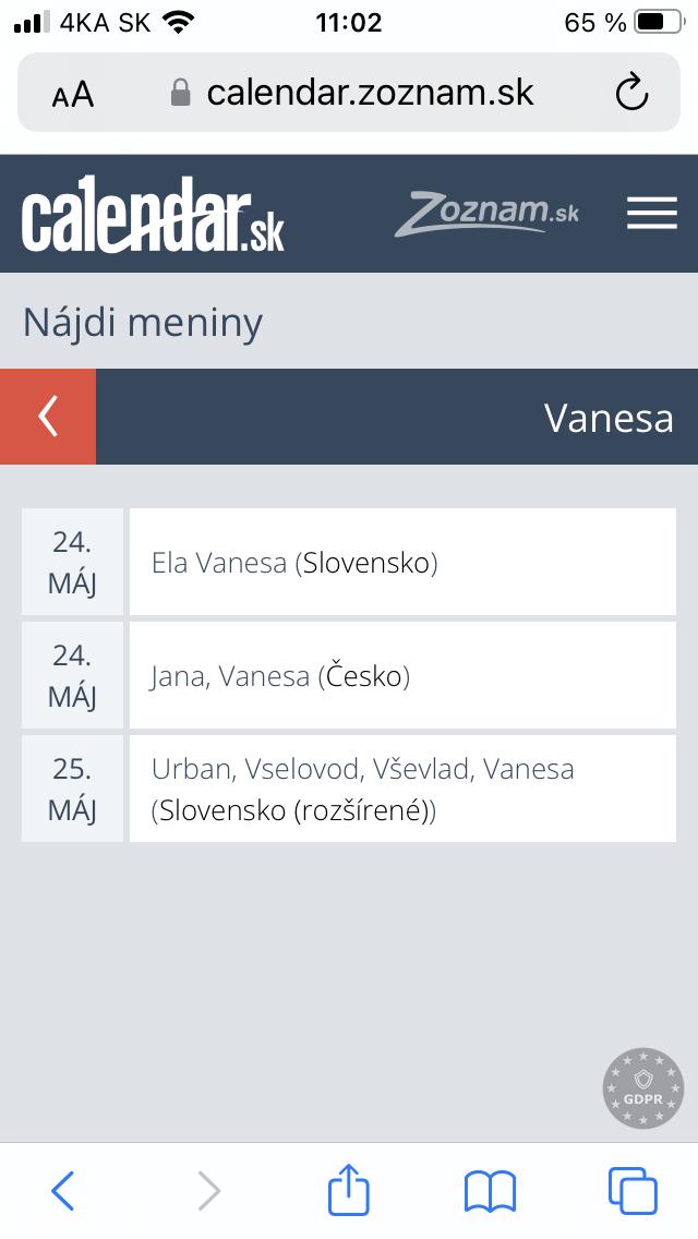 @opica_skorica tak toto zaujíma aj mňa,lebo dcéru mam Vanesku a včera jej už gratulovali a odjakživa oslavujeme 25.5.,aspoň doteraz to tak bolo.