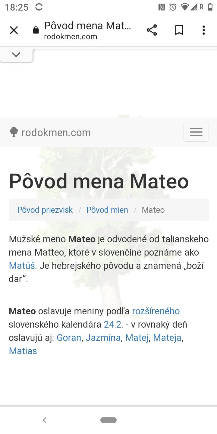 Mateo. Nech potom nemusí celý život všade hovoriť "MatteosdvomiT"