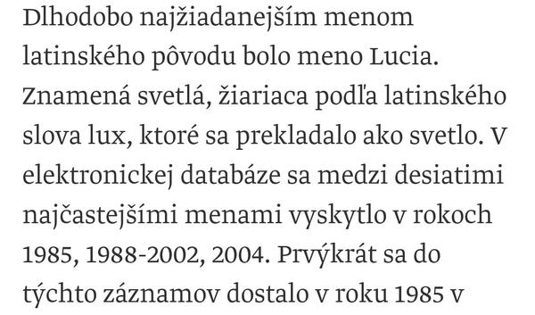 @babulkomale pani to myslela urcite tak, ze meno Lucia nesie aj svata Lucia. Tak ze by to malo aj krestansky vyznam. Vela ludi vybera mena podla nejakeho patrona s tym, ze ho bude ten patron sprevadzat cely zivot. Podobne ako ked si birmovanci vyberaju birmovne meno podla svätého...