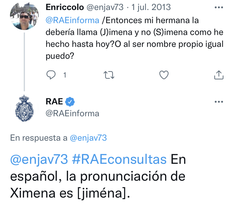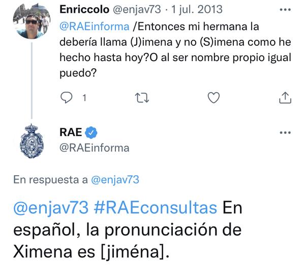 Nedalo mi to nepatrat viacej a nasla som dalsie zaujimave otazky a odpovede tento chlapik sa pytal presne na to iste - pronunciación de ximena - odpoved podla pravopisu a fonetiky del castellano je jasna. Co ale dodava la RAE je to, ze podla katalanstiny alebo gallego - las lenguas cooficiales de España by ti vyslovili la “x” ako /sh/ lebo tak ju vyslovuju v tychto jazykoch 😜🤓zaujimavy linguisticky a foneticky problem