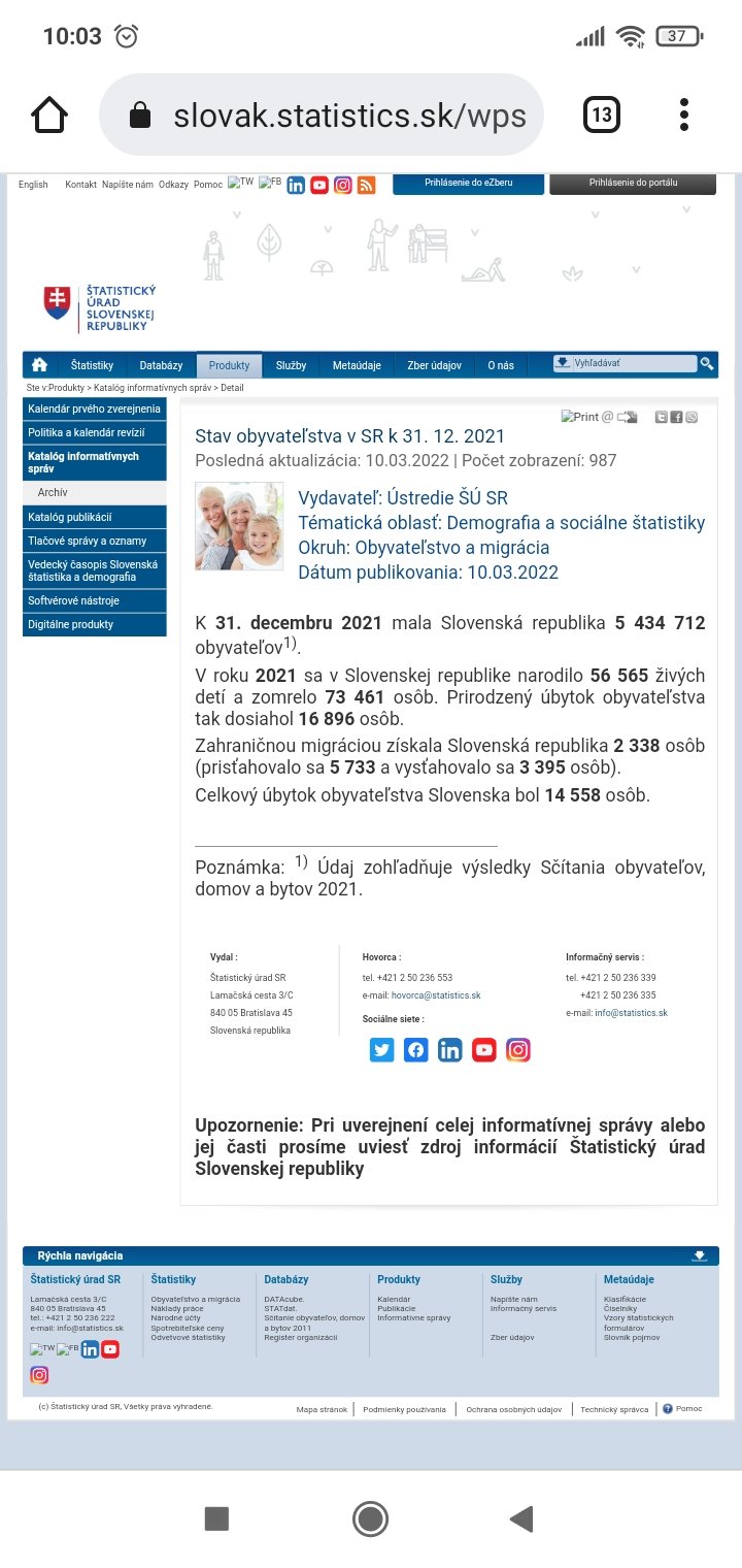 @andrea_86 samozrejme že Slováci majú veľa detí? Hmm.... jasné, ani štatistiky ani to, že vlády minimalne za posledných 10 rokov riešia ako zvýšiť pôrodnosť na Slovensku Ti neotvorili oči? To, že Ty vidíš niekde ženu s 3 deťmi znamená, že inde sú ženy, ktoré nemajú ani jedno dieťa. Tie nevidíš?